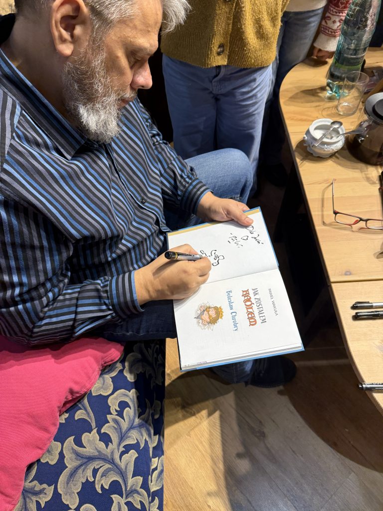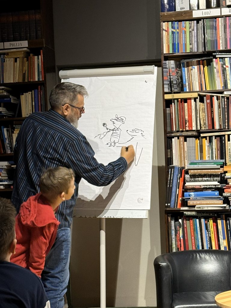 Uczniowie poznali tajniki pracy pisarza i rysownika oraz usłyszeli szereg anegdot i ciekawostek. Mogli zakupić wybrane książki i zdobyć dedykacje.