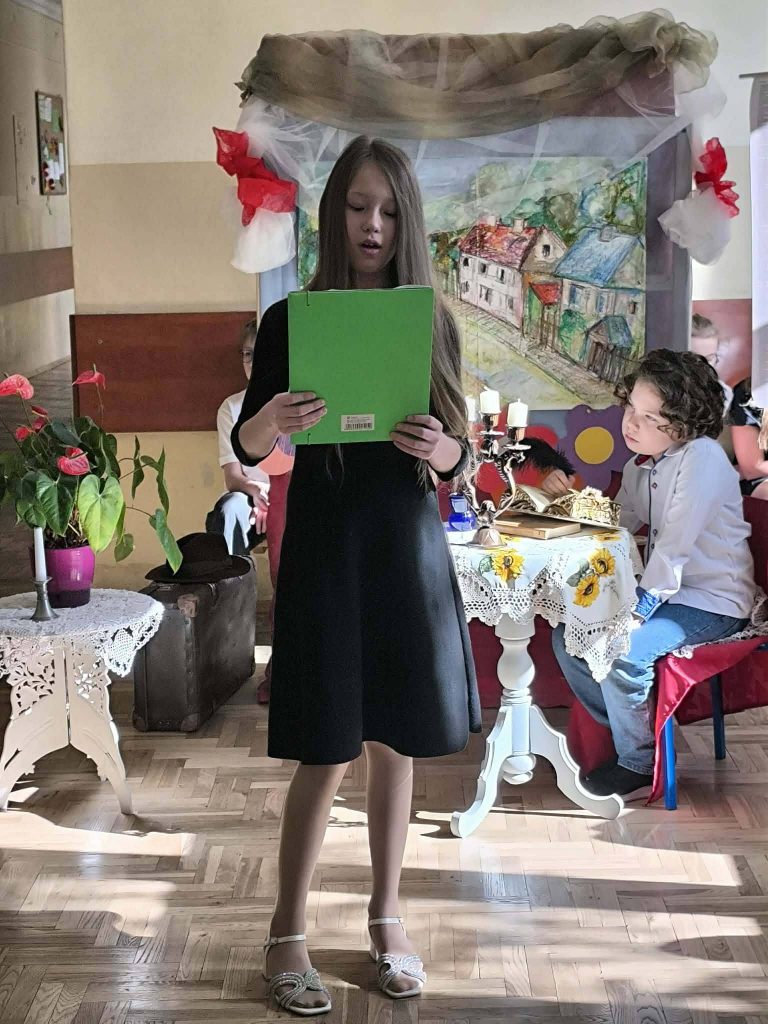 ​Trzecioklasiści z wielkim zaangażowaniem przybliżyli postać wielkiego wieszcza, łącząc recytację jego utworów z ciekawą oprawą muzyczną i wizualną. Występ był nie tylko lekcją historii i literatury, ale także radosnym wspólnym świętowaniem. Widownia nagrodziła młodych artystów gromkimi brawami, a cała uroczystość przebiegła w podniosłej, a zarazem serdecznej atmosferze, integrując naszą szkolną społeczność.