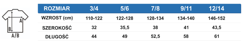 Na stronie szkoły dostępne są wszystkie wzory koszulek oraz tabele rozmiarów.